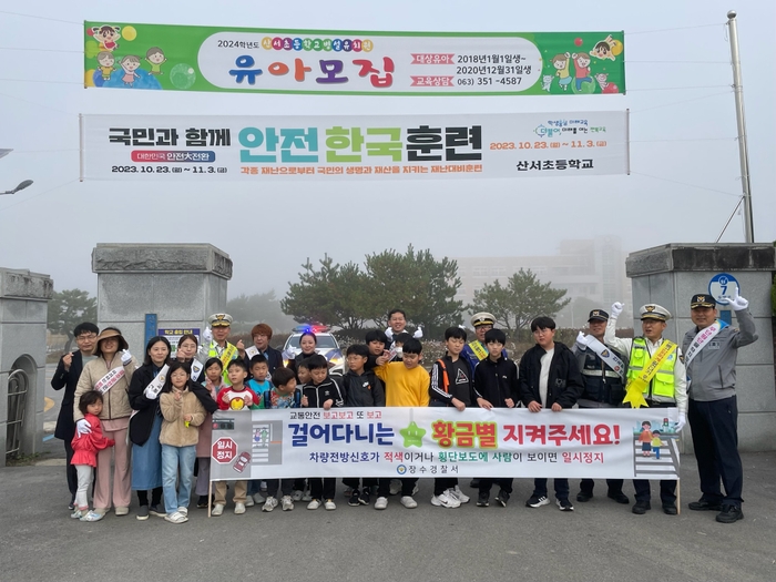 장수경찰서(정덕교 서장)는 25일 산서초등학교 정문 앞에서 교통협력단체(녹색어머니, 모범운전자)와 함께 어린이 교통사고 예방을 위해 학생들의 등굣길 교통안전지도를 실시했다.