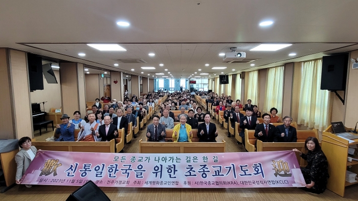 모든 종교가 나아가는 길은 한길! 신통일한국을 위한 초종교기도회가 5일 오전 전주시 덕진구 팔달로 소재 통일회관 3층 대강당에서 전북종교인연합(공동회장 이상재 허종현 운겸스님) 주최·주관으로 기독교, 불교, 원불교, 가정연합, 천도교 등 각 종단 지도자 3백여명이 참석한 가운데 성황리에 개최되었다.