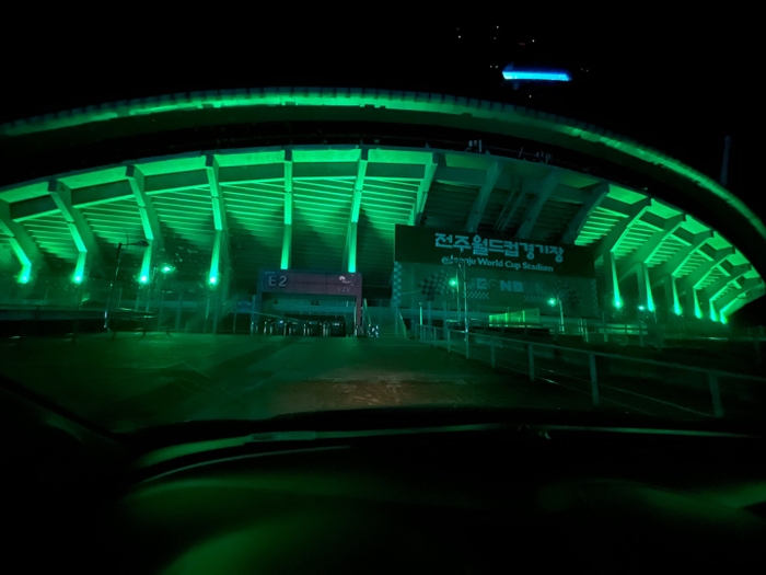 전주시는 전주월드컵경기장 경관조명(동측)과 가로등 보안조명을 초록빛 LED 조명으로 교체했다.
