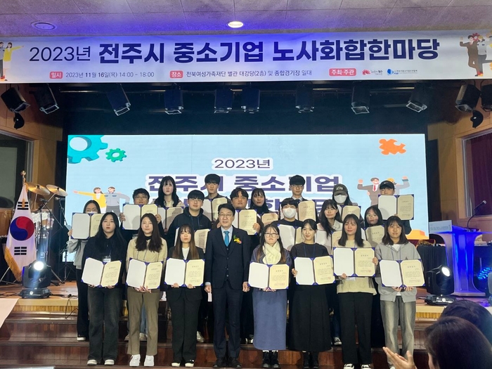 전주시와 (사)전주시중소기업인연합회(회장 강동오)는 전북여성가족재단과 전주종합경기장 일원에서 ‘2023년 전주시 중소기업 노사화합한마당 축제’를 지난 16일 개최했다.
