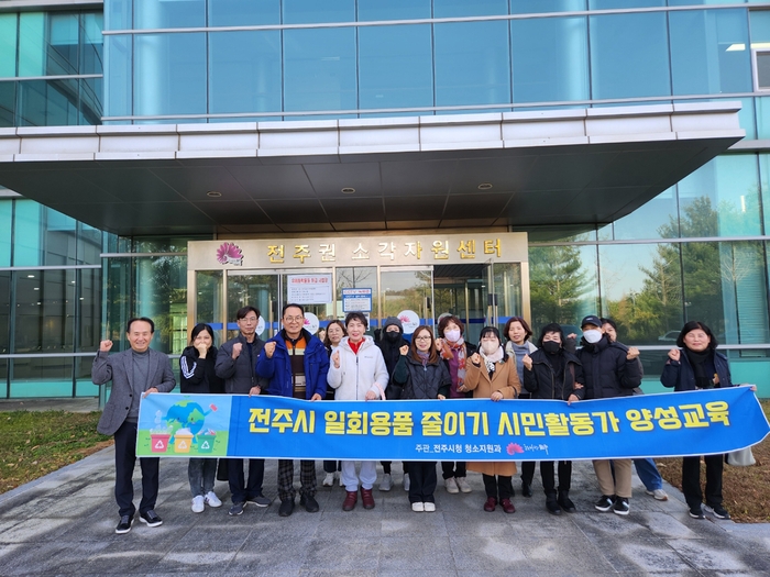 전주시는 ‘1회 용품 줄이기 시민활동가 양성 교육’을 거쳐 전주시 쓰레기 처리 실태 현황 및 분리배출 필요성과 올바른 분리배출 방법을 홍보하게 될 ‘1회 용품 줄이기 시민활동가’ 4기 수료생 13명을 배출했다고 12일 밝혔다.