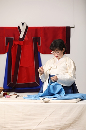 먼저 침선장(한복 바느질) 보유자 신애자 씨는 조선시대 조복·제복 재현을 평생 업으로 살며 활동하고 있는 인물이다.