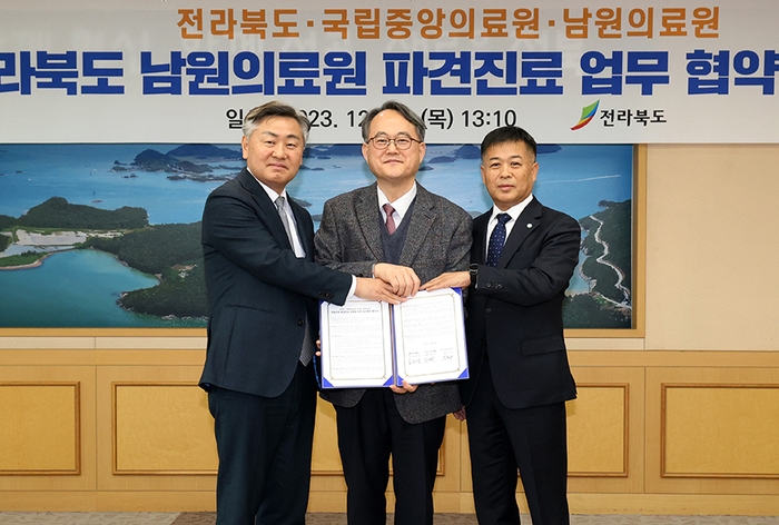 전북도는 구랍 28일 도청 회의실에서 김관영 도지사와 주영수 국립중앙의료원장, 오진규 남원의료원장 등이 참석한 가운데 ‘전북도 남원의료원에 파견진료를 하기 위한 업무 협약’을 체결했다고 밝혔다.