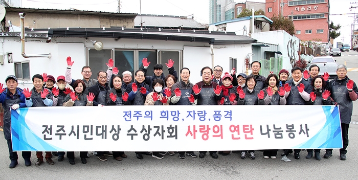 지난 19일 전주시민대상 수상자회(회장 최찬욱, 93년 체육대상) 회원 40여 명과 전주시 노송동주민센터 직원들은 19일 노송동 일원에서 사랑의 연탄 나눔 봉사활동을 펼쳤다.