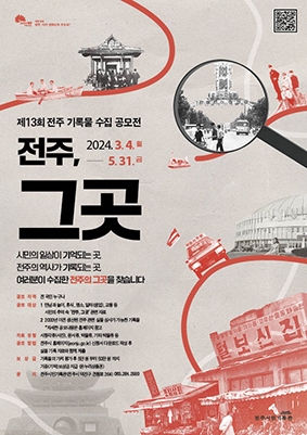 전주시는 오는 3월 6일부터 5월 31일까지 ‘전주, 그곳’을 주제로 한 ‘제13회 전주 기록물 수집 공모전’을 개최한다.