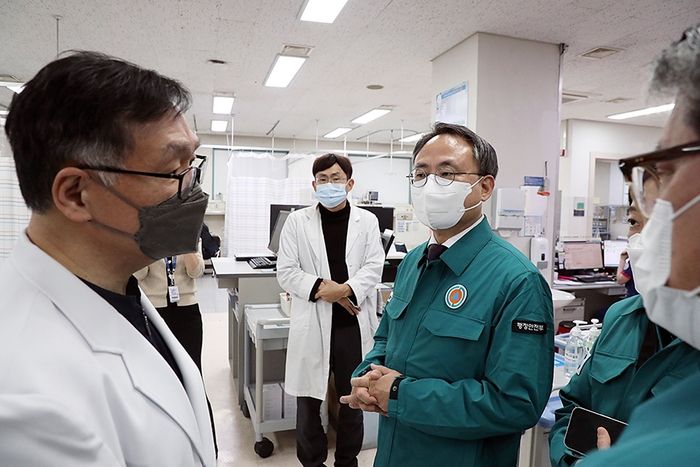 고기동 행정안전부 차관은 27일 군산의료원을 방문, 전북자치도의 비상진료체계를 점검하고 현장 의료진의 애로사항을 청취했다. 군산의료원은 1922년 개원한 100여 년의 긴 역사를 가진 도립병원으로 전북 지역 도민의 질병치료, 건강증진을 위해 500여 명의 의료진이 근무하고 있는 지역 거점 공공의료기관이다. 현재 전북자치도는 10개 응급의료센터, 10개 지역응급의료기관, 1개 응급의료시설이 24시간 응급실 기능을 수행하며 진료 공백을 최소화하기 위해 노력하고 있다. 고 차관은 이날 전북자치도의 전공의 근무 현황과 응급의료 및 비상진료체계 등 전북지역 공공의료체계 전반을 점검했다. 또 군산의료원장으로부터 의료원 현황을 보고받고 비상진료에 따른 애로사항을 청취했으며 공공의료 묵묵히 일하고 있는 의료원 관계자들을 격려했다. 고 차관은 “지역 의료공백 최소화를 위해 공공의료기관의 역할이 그 어느 때보다 중요하다”며 “국민의 생명과 건강을 최우선으로 해 지역의 비상진료대책을 차질 없이 추진해 달라”고 당부했다.