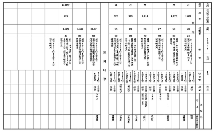 구 토지대장은 1910년 일제에 의해 한자로 만들어져 1975년까지 사용된 토지대장으로 토지 소유권 분쟁, 부동산특별조치법, 조상 땅 찾기, 등록사항 정정 등 민원발급과 토지업무의 기초자료로 활용되는 지적공부를 일컫는다.