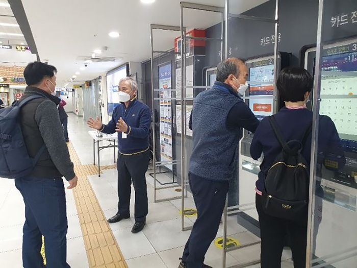 전주시 전국노인일자리센터(센터장 장우철)에서는 전주고속버스터미널 내에 설치된 무인 발권기 안내 도우미 6명을 파견해 예매 및 발권 이용객들에게 큰 도움을 주고 있다.