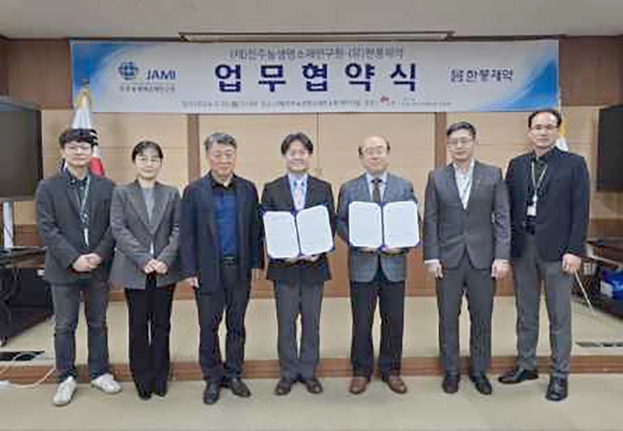 (재)전주농생명소재연구원(이하 연구원, 원장 오병준)은 25일 (유)한풍제약과 반려동물용 관절염 기능성 소재 개발 및 산업화 추진을 위한 업무협약을 체결했다.