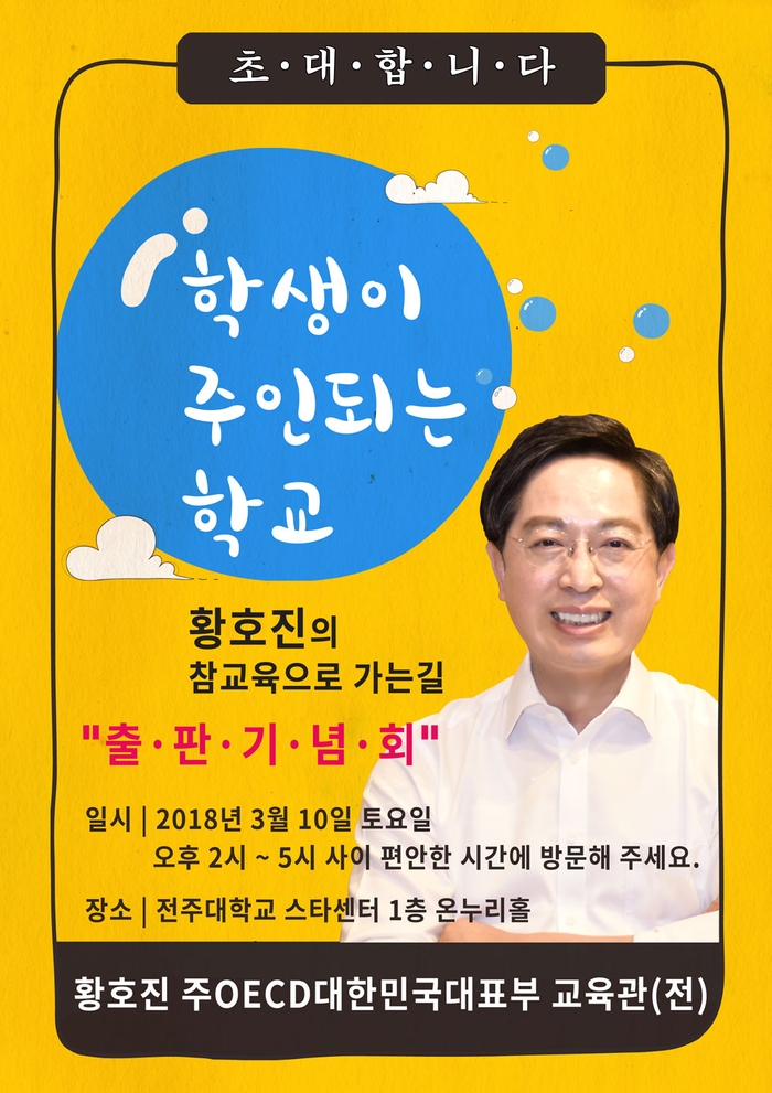 황호진 전북교육감 예비후보(전 OECD 대한민국 대표부 교육관)는 오는 10일 전주대 스타센터에서 출판기념회를 열고 본격적인 지지세 확산에 돌입한다.