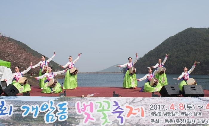 개암동 벚꽃축제는 감교리 주변 3개 마을(봉은·회시·유정) 주민들이 2회에 거쳐 개최해 총 46,000여 명의 관광객들이 찾아오는 성공적인 소규모 마을축제로 이끌었다.