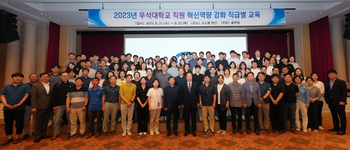 우석대학교(총장 남천현)가 직원의 혁신역량을 강화하기 위해 21일부터 양일간 소노벨 변산에서 2023학년도 직급별 교육을 진행했다.