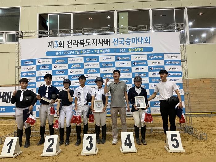 전북도는 8일부터 9일까지 양일간 찾아오는 승마환경을 조성하고 말산업의 발전과 승마인구 저변 확대를 위한 ‘제3회 전라북도지사배 전국승마대회’를 전국 생활체육인 및 유소년 승마인들이 참여한 가운데 장수국제승마장(장수군 천천면)에서 개최했다. 전라북도지사배 전국승마대회는 2019년 1회를 시작으로, 코로나 19로 중단되었다가 2022년 2회, 올해 3회 대회를 개최했으며 전국의 생활체육승마인과 유소년승마단 뿐 아니라 전문 승마선수 등 2백50명여명의 선수들이 참가해 성황을 이뤘다. 올해 대회에서는 일반 생활체육인이 참여하는 경기뿐 아니라 전문 선수가 참여하는 대한승마협회 공인대회까지 함께 개최되어 보다 내실있는 승마대회로 치러졌다. 도 관계자는 “승마장의 시설지원 등을 통해 승마 환경을 개선하고 더 많은 승마대회를 개최해 전북이 승마산업의 중심 역할을 할 수 있도록 노력하겠다”고 말했다. 한편 올해 도내에서는 10월에 개최될 제104회 전국체육대회 승마경기가 장수군에서 개최되며 익산, 부안새만금, 완주승마장 등에서 18개의 승마대회가 개최될 예정이다.