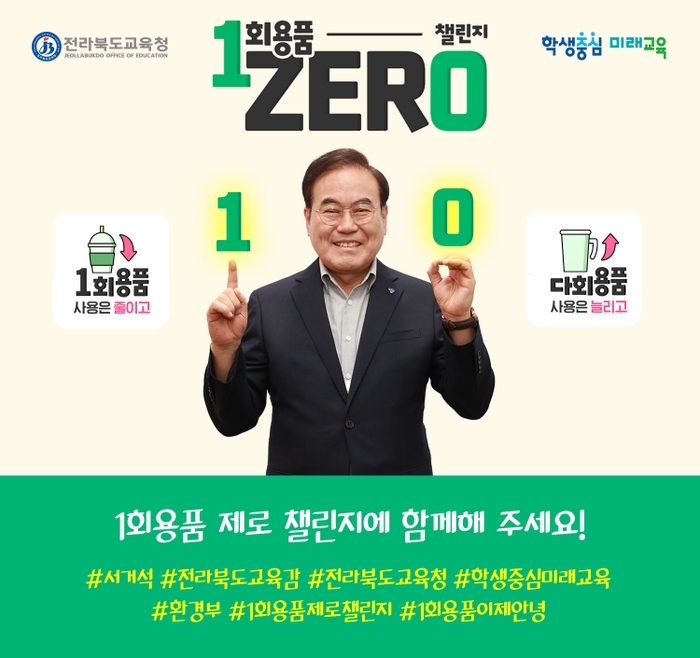 서거석 전라북도교육감이 11일 ‘1회용품 ZERO 챌린지’에 동참했다.