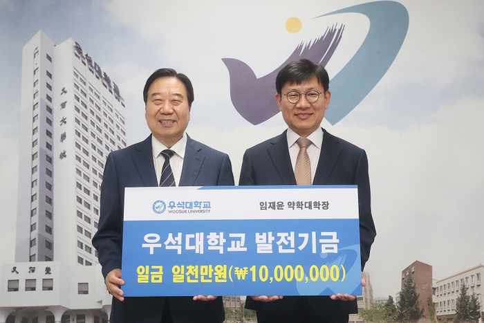 우석대학교(총장 남천현)의 발전을 위해 임재윤 약학대학장이 발전기금 1000만 원을 쾌척했다.
