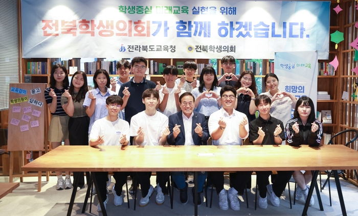 전라북도교육청은 15일 전주시내 한 북카페에서 ‘전북교육 희망의 대전환 출범 1주년 기념 전북학생의원-교육감 정담회’를 개최했다.