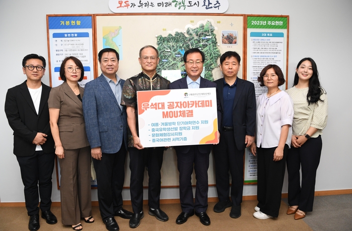 완주군인재육성재단이 19일 우석대 공자아카데미와 업무협약을 체결하고 중국어교육을 위해 상호협력하기로 했다.
