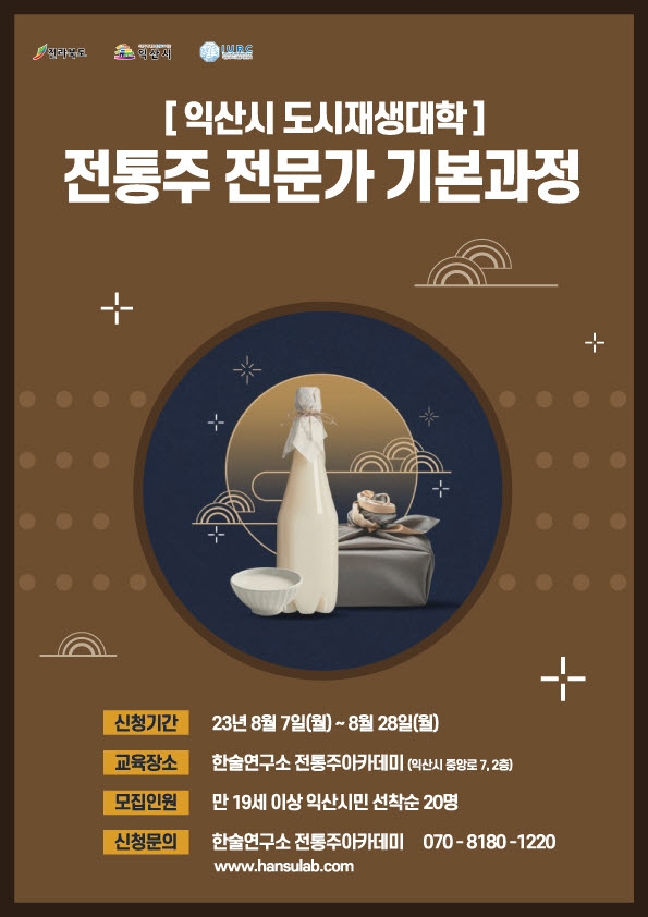 또한 익산시 도시재생지원센터에서도 전통주 전문가 기본교육 수강생을 선착순 모집한다.