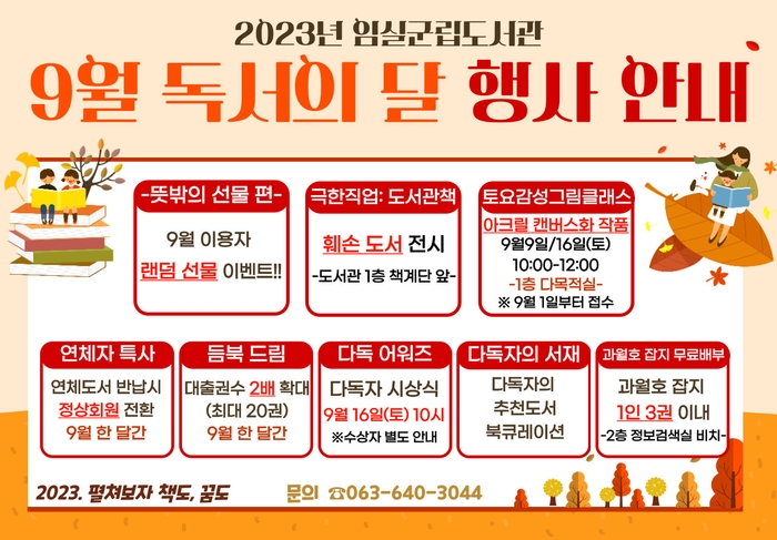 임실군립도서관이 9월 독서의 달을 맞아‘펼쳐보자, 책도 꿈도’를 주제로 지역주민의 문화복지향상을 위해 다채로운 프로그램을 운영하고 있다.