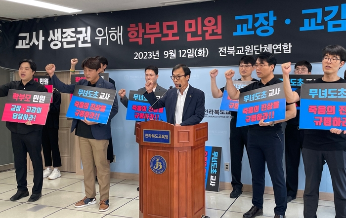 전북교총 오준영 정책연구위원장은 "교사들은 수업 외 불필요한 행정 업무를 전담하며, 소수 학부모의 악성 민원과 무분별한 아동학대 신고가 잇따르고 있다"며 "전북교육청은 현장의 간절한 목소리를 경청해 주시길 바란다"고 호소했다.
