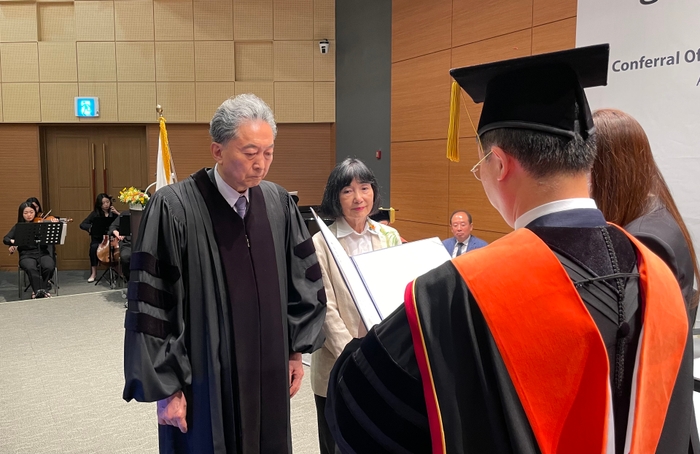 명예박사 학위를 받은 하토야마 유키오 전 총리는 일본 근현대 정치사에 뚜렷한 자취를 남기고, 정계를 떠난 후에도 동아시아공동체연구소 이사장 등 다양한 직책을 맡아 활동하고 있다.