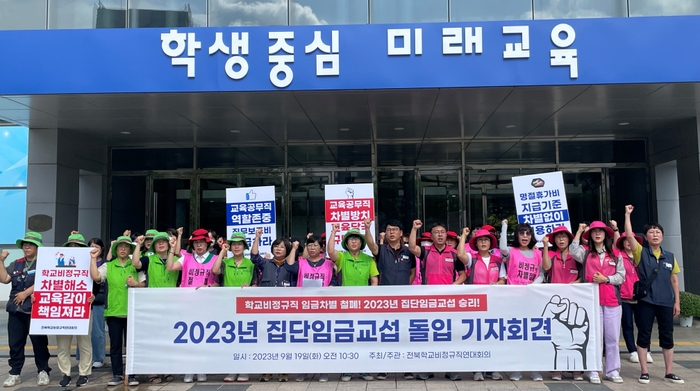 학비연대는 "2023 집단임금교섭을 통해 학교비정규직노동자들이 더 커진 역할에 맞는 적정한 임금을 쟁취할 것"이라며 "정부와 교육청은 책임 있는 자세로 교섭에 임할 것을 촉구한다"고 말했다.