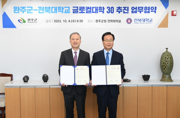 특히 완주군은 전북대가 글로컬대학30 사업에 최종 선정될 수 있도록 가용 자원을 총동원해 적극 지원할 예정이며, 전북대는 (가칭)완주군 발전연구소 설립·운영 등을 통해 지역 주요 현안에 대한 정책연구를 수행해 나갈 방침이다.