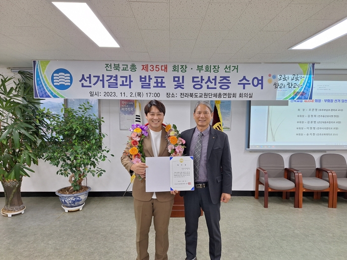 전라북도교원단체총연합회 선거관리위원회(위원장 임덕만, 이하 전북교총)는 제35대 전북교총 회장 선거 결과, 오준영 후보(부남초·중학교 교사)가 단독으로 등록함에 따라 회장선출규칙 제80조 규정에 의거 무투표로 당선됨을 확정하고 11월 2일 당선증을 수여했다.