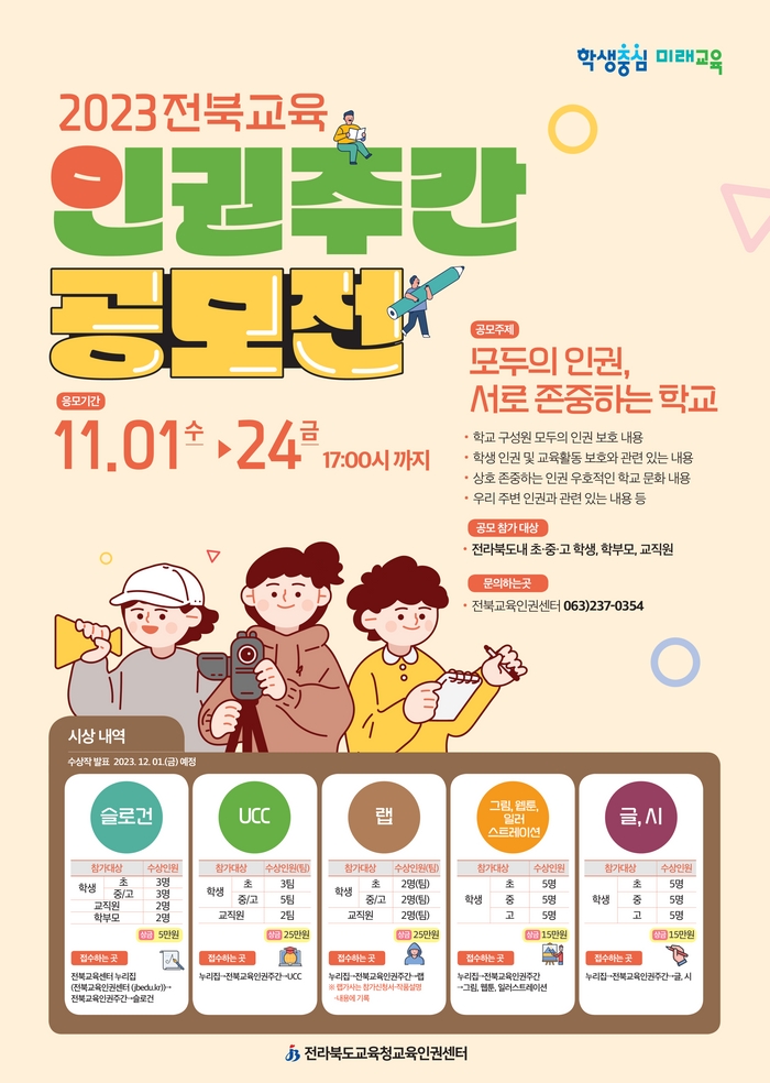 전북교육청이 '2023 전라북도 교육인권주간 공모전'을 개최한다고 15일 밝혔다.