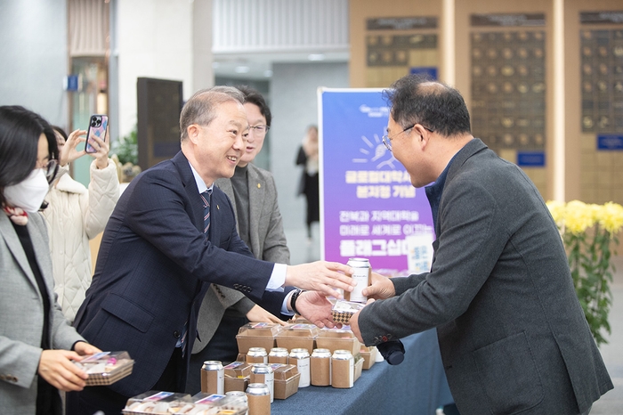 글로컬대학30 사업에 최종 선정된 전북대학교는 17일 아침 학교구성원들과 간식을 나누며 기쁨을 함께 나눴다.