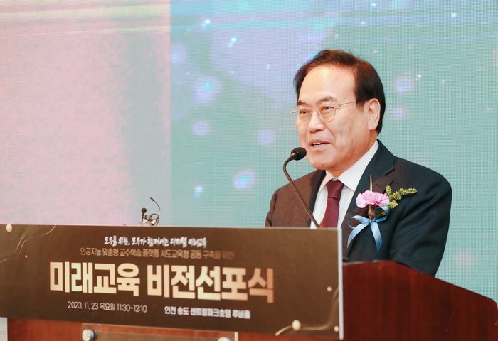 전북교육청은 23일 인천 센트럴파크호텔에서 10개 시도교육청 및 한국지능정보사회진흥원과 함께 인공지능 맞춤형 교수학습 플랫폼이 그리는 미래교육 비전 공유와 긴밀한 협업체계 구축을 위한 미래교육 비전선포식을 참석했다.