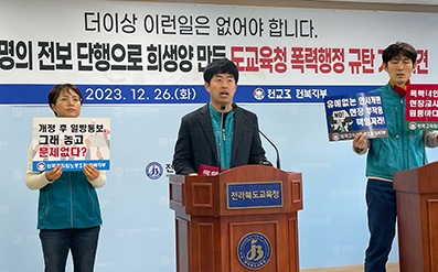전국교직원노동조합 전북지부는 전북교육청이 저경력 교사의 특정 지역·학교 집중 현상을 완화하기 위해 마련한 중등 인사관리기준 개정이 '일방적인 인사 행정'이라는 주장했다.