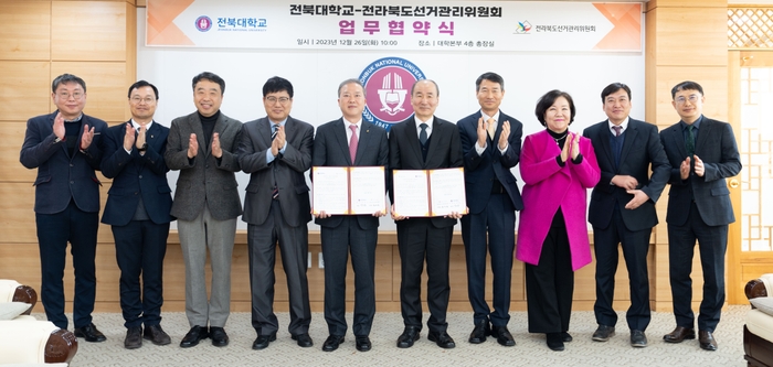 전북대와 전북선관위는 26일 오전 전북대 총장실에서 양 기관 주요 관계자들이 참석한 가운데 공식 협약식을 가졌다.