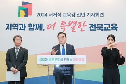 서 교육감은 "1월 18일에는 전북교육청이 전북특별자치도교육청으로 새롭게 출발한다"면서 "'더 특별한 전북교육 학생중심 미래교육'으로 전북을 한국교육의 중심으로 만들겠다"고 말했다,