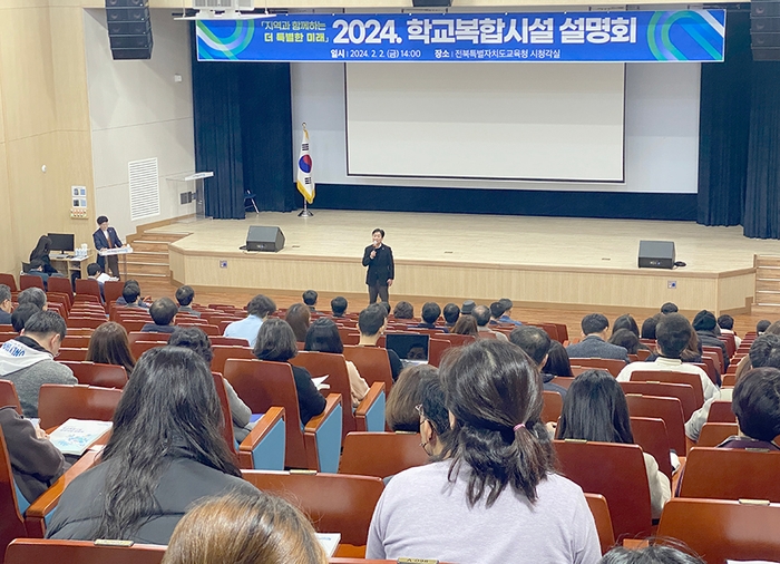 전북특별자치도교육청(교육감 서거석, 이하 전북교육청)은 2일 오후 2시 창조나래 시청각실에서 ‘2024년 학교복합시설 설명회’를 개최했다.