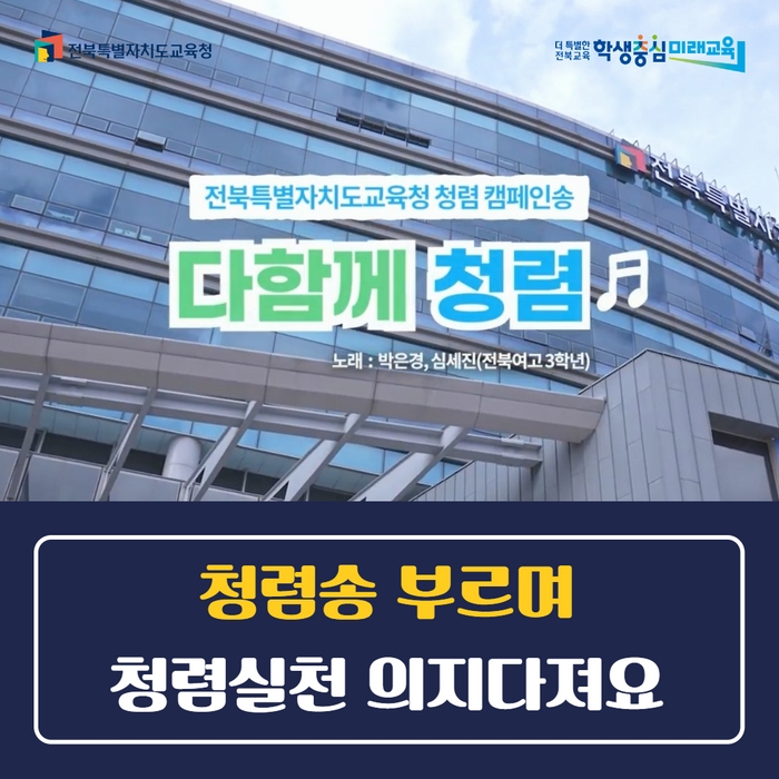 전북특별자치도교육청이 공정한 전북교육 실현을 위해 '청렴송'을 제작해 활용한다고 6일 밝혔다.