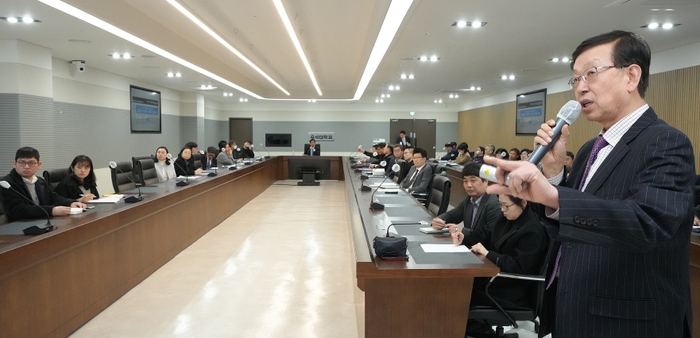 18일 오후 전주캠퍼스 문화관 5층 화상회의실에서 열린 공청회에는 박노준 총장과 이홍기 글로컬 추진본부장, 교무위원, 교수, 직원 등이 참석했다.