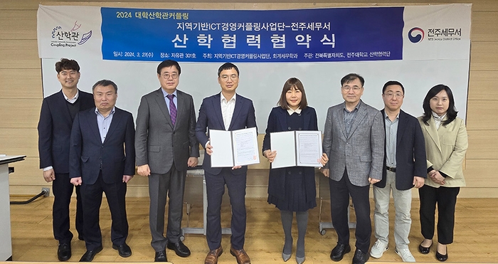 지역기반ICT경영 커플링사업단(단장 김효진)과 회계세무학과는 전북특별자치도 산학관커플링사업의 일환으로 진행하는 지역기반ICT경영 커플링사업 참여 학생과 전공 학생들에게 폭넓은 세무 현장실습 기회 제공 및 창의적 실용인재 양성을 위해 업무 협약을 체결했다.