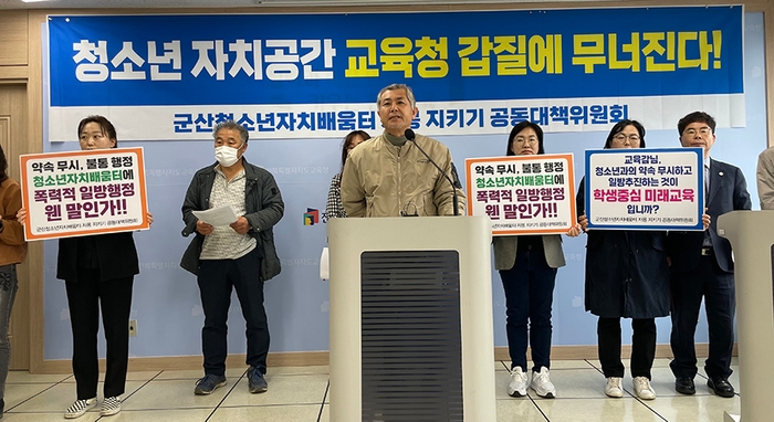 자몽 지키기 대책위는 "지난 26일 군산교육지원청은 난데없이 '자몽' 운동장 한가운데에 테니스장을 만들겠다고 통보했다"며 "지난 5년간 청소년 주도로 공간을 구성했던 '자몽'이 설립 취지가 훼손될 위기"라고 주장했다.