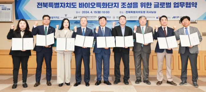 산업부의 바이오 특화단지 공모에 도전한 전북자치도가 미국 유명 연구센터와 인체 관련 바이오 분야 협력을 위한 업무협약을 체결하는 등 바이오산업 경쟁력 확보에 보폭을 확대하고 있다. 전북자치도는 15일 존스홉킨스 의과대학 미세생체조직시스템 연구센터, 전북대학교, 원광대학교 등과 바이오산업 육성을 위한 업무협약을 체결했다고 밝혔다. 이날 업무협약에는 김관영 도지사와 김덕호 존스홉킨스 의대 미세생체조직시스템 연구센터장을 비롯 양오봉 전북대학교 총장, 박성태 원광대학교 총장, 이규택 전북테크노파크 원장, 이은미 전북바이오융합산업진흥원장, 김차영 한국생명공학연구원 전북분원장, 정병엽 한국원자력연구원 첨단방사선연구소장, 황경화 안전성평가연구소 전북분소장 등이 참석, 바이오산업 육성에 대한 의지를 보였다. 존스홉킨스 의과대학 미세생체조직시스템 연구센터는 인간 질병과 정밀 의학 응용 분야의 예측, 줄기세포 기반 체외 3D 기관형 모델 개발 및 검증을 위한 허브 구축을 목표로 하는 혁신연구기관이다. 협약은 ▲국제 공동연구사업 수행 협력 ▲연구 자료, 출판, 정보의 공유 ▲연구 인력 교류 ▲기타 양 기관이 합의한 협력 교류 등을 주요 내용으로 담고 있어 향후 전북자치도 바이오 연구개발과 인력양성에 큰 역할을 할 것으로 기대된다. 이날 협약에 이어 전북자치도와 존스홉킨스 의대 미세생체조직시스템 연구센터는 ‘글로벌 오가노이드 기술, 산업화 동향’에 대한 세미나를 갖기도 했다. 이를 통해 양 기관은 해외 오가노이드 기술 동향에 대한 공유와 함께, 전북자치도의 관련 산업 육성 방안에 대한 협력 방안을 모색하는 시간도 가졌다. 이번 협약으로 전북자치도가 가진 바이오 연구기반과 존스홉킨스 의과대학 미세생체조직시스템 연구센터 간 국제 공동연구사업 수행과 연구 인력 교류를 통해 향후 전북 바이오산업에 성장에 큰 도움이 될 것으로 보인다. 김관영 도지사는 “도내에는 전북대와 원광대를 비롯한 한국생명공학연구원 전북분원 등 관련 기관이 집적되어 있다”며 “도내 대학과 기관이 세계 연구자들과 공동연구사업 수행 및 연구인력 교류를 통해 바이오 분야 경쟁력을 더욱 확보해 나가도록 지원을 아끼지 않겠다”고 말했다. /최성민 기자