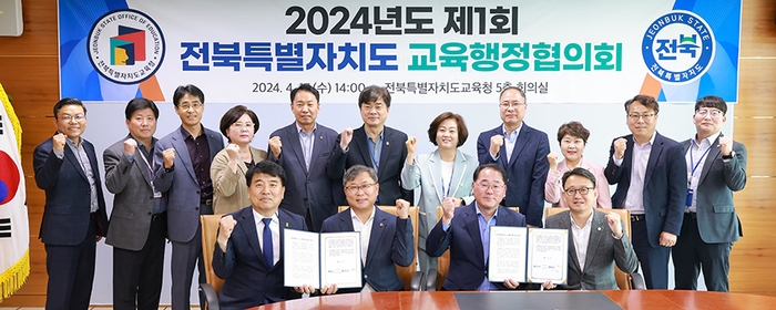 전북자치도와 전북자치도교육청이 원활한 교육행정 추진을 위해 두 손을 맞잡았다. 전북자치도와 도 교육청은 17일 교육청 회의실에서 김종훈 경제부지사와 유정기 부교육감이 참석한 가운데 ‘2024년 제1회 전북특별자치도 교육행정협의회’를 개최했다.