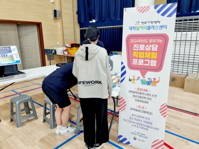 전주기전대학 대학일자리플러스센터가 지난 28일 무주군 안성고등학교에서 전교생을 대상으로 진로탐색직업체험 프로그램을 진행했다.