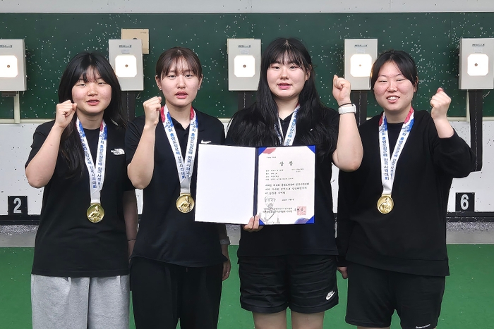 지난 5일부터 11일까지 전남 나주 전남종합사격장에서 열린 이 대회에서 우석대학교 사격부 김예진·김나현(이상 스포츠지도학과 4년)·류연주(체육학과 4년)·한승현(체육학과 2년)은 한국체대와 1704점으로 총점이 같았으나 이너텐(Inner Ten) 횟수에서 1점 앞서 대회신기록으로 금메달을 차지했다.