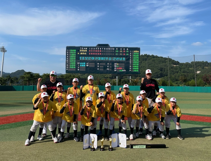 군산남초는 지난 9일 충북 보은군 스포츠파크에서 열린 2024년 제2회 결초보은 전국유소년야구대회 결승전에서 파주 BC팀을 13-2로 이기고 우승을 거뒀다.