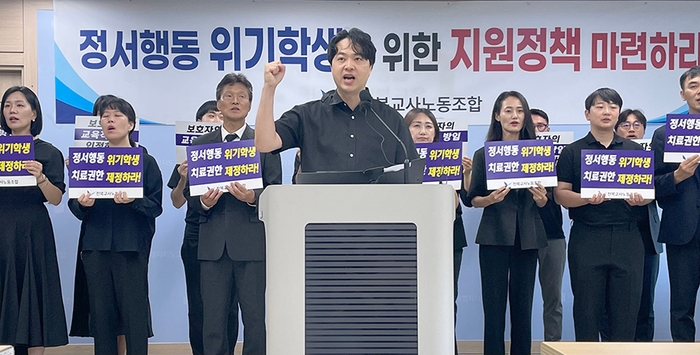전북교사노동조합은 19일 오전 전북특별자치도교육청 브리핑룸에서 기자회견을 열고 '정서행동 위기학생 지원 대책 마련을 촉구했다.