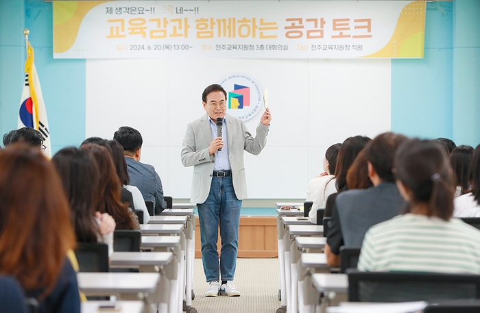 서거석 교육감은 “교육 현장의 생생한 목소리를 듣기 위해 학부모, 교직원들을 만나는 공감토크를 하고 있다”면서 “학력신장, 수업중심 학교문화 조성, AI미래교실 구축 등 주요 정책으로 전북의 교육경쟁력이 커질 수 있도록 현장과의 소통을 강화하겠다”고 말했다.
