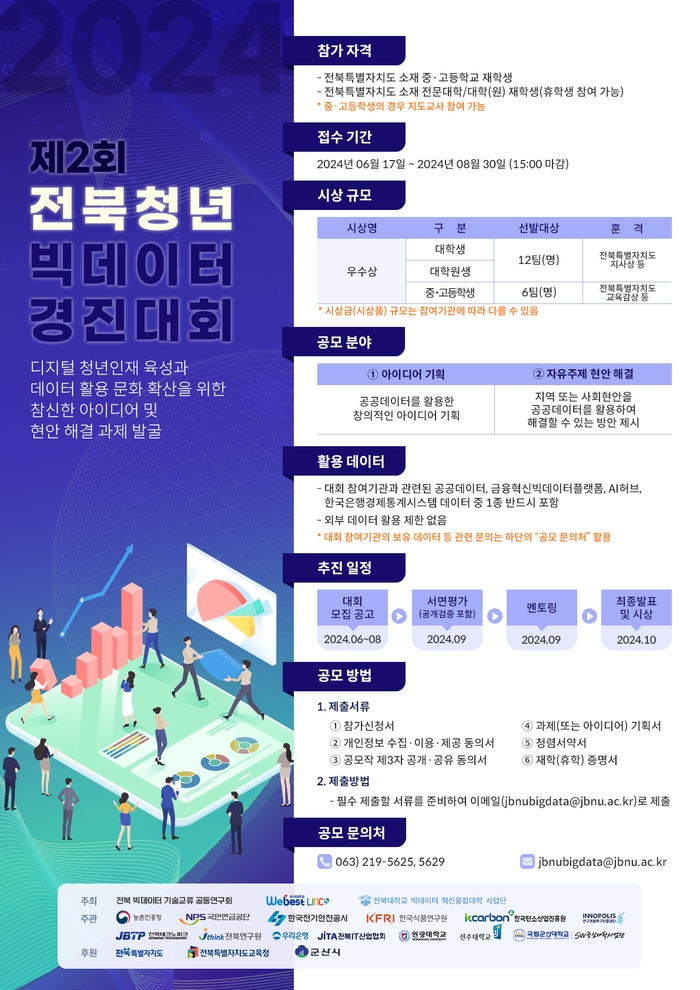 전북대학교 빅데이터 혁신융합대학 사업단(단장 안정용)이 ‘2024년 제2회 전북 청년 빅데이터 경진대회’를 개최한다.
