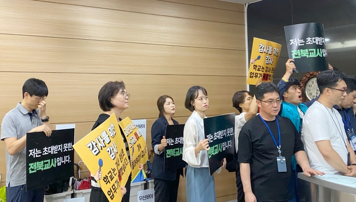 노조는 "공지했던 유튜브 방송은 행사 시작 30분 전에 돌연 취소됐고, 초대받지 못한 교사들은 전북교육청 1층 로비에서 직원들에게 막혀 들어가지 못했다"며 "수십명의 직원들이 2중, 3중으로 막고 있었는데 교사 생활 20년 동안 이렇게 치욕스러운 순간은 없었다"며 한탄했다.