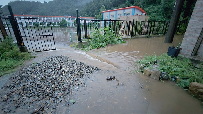 완주 운주초와 운주중의 운동장과 교실이 물에 잠기고 급류로 담장 일부가 쓸려나가 휴업에 들어갔다.
