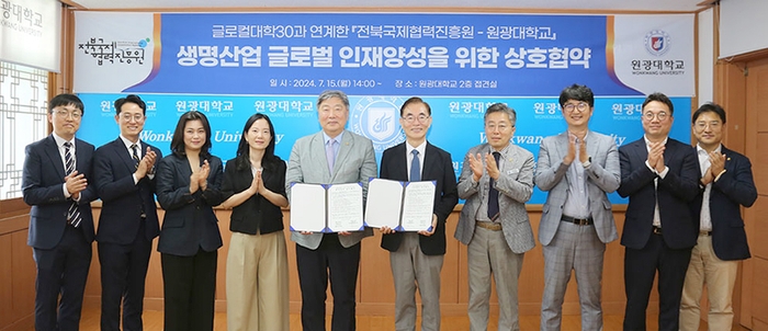 원광대학교(총장 박성태)와 전북국제협력진흥원(원장 김대식)이 글로컬대학30과 연계해 생명산업 글로벌 인재 양성 및 외국인 유학생 유치, 정주 촉진을 위한 업무협약을 체결했다.